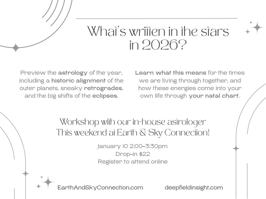 Our astrologer has studied myths and archetypes with a passion for more than 25 years, and tracked every pattern of the planets’ movements for the last five years. Informed by college-level astronomy and philosophy of science, this winter’s class will cover all the bases. No pressure, drop in for your favourite topic or take the whole course!